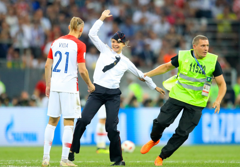 Переодетая в милиционера активистка Pussy Riot выбежала на поле Фото: meduza.io