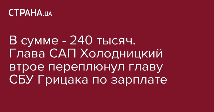В сумме - 240 тысяч. Глава САП Холодницкий втрое переплюнул главу СБУ Грицака по зарплате