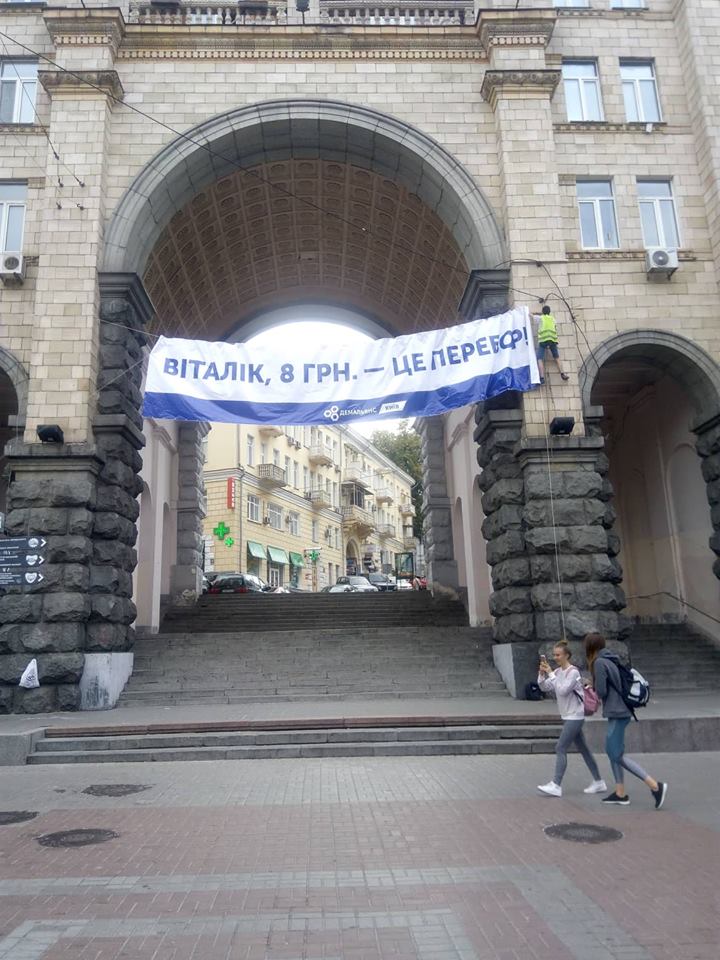 По Киеву развесили растяжки "Виталик, 8 грн - это перебор"