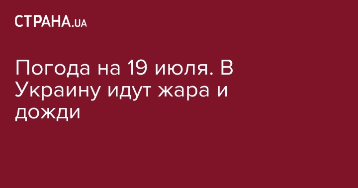 Сегодня, 19 июля в Украине ожидается теплая погода, температура до +30 градусов, на большей части страны, в том числе Киеве, продут дожди.