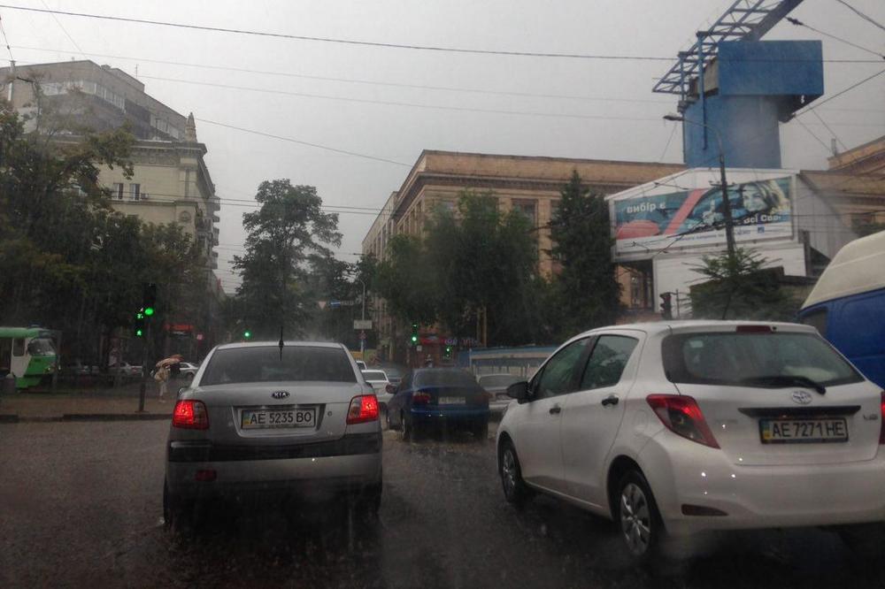 В пятницу, 20 июля в городе Днепр прошел сильный ливень. Улицы превратились в реки. Временно остановилось движение транспорта на главных дорогах, а на улицах возникли пробки.