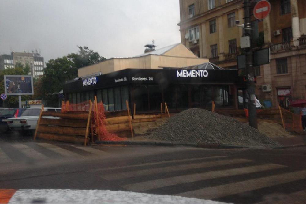Небольшой водопад образовался на ступеньках аллеи на улице Гоголя. А на проспекте Дмитрия Яворницкого грязевые фонтаны хлестали из забитых ливневок.