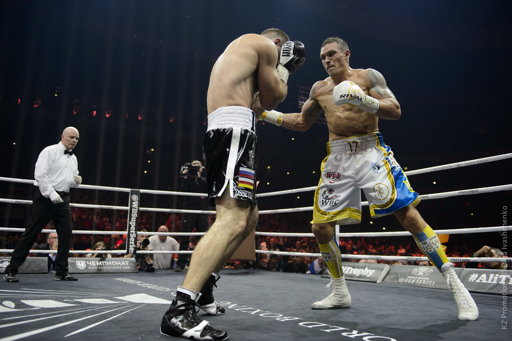 Промоутерская компания К2 опубликовала яркие фото боя между украинцем Александром Усиком и россиянином Муратом Гассиевым.
