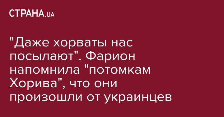 При этом Фаринон напомнила хорватам, что они переселились "с территории Западной Украины на Балканы в IV-VI столетии". Она утверждает, что даже названию страны они обязаны жителям Украины.