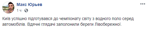 Сегодняшние затопленные дороги киевляне называют "водным поло" среди автомобилей.