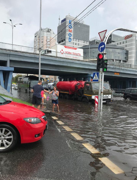 В понедельник, 23 июля, Киев затопило после ливня. Некоторые улицы и районы превратились в реки. Особенно пострадал район возле станции метро Левобережная и Черниговская, где вода залила улицы.