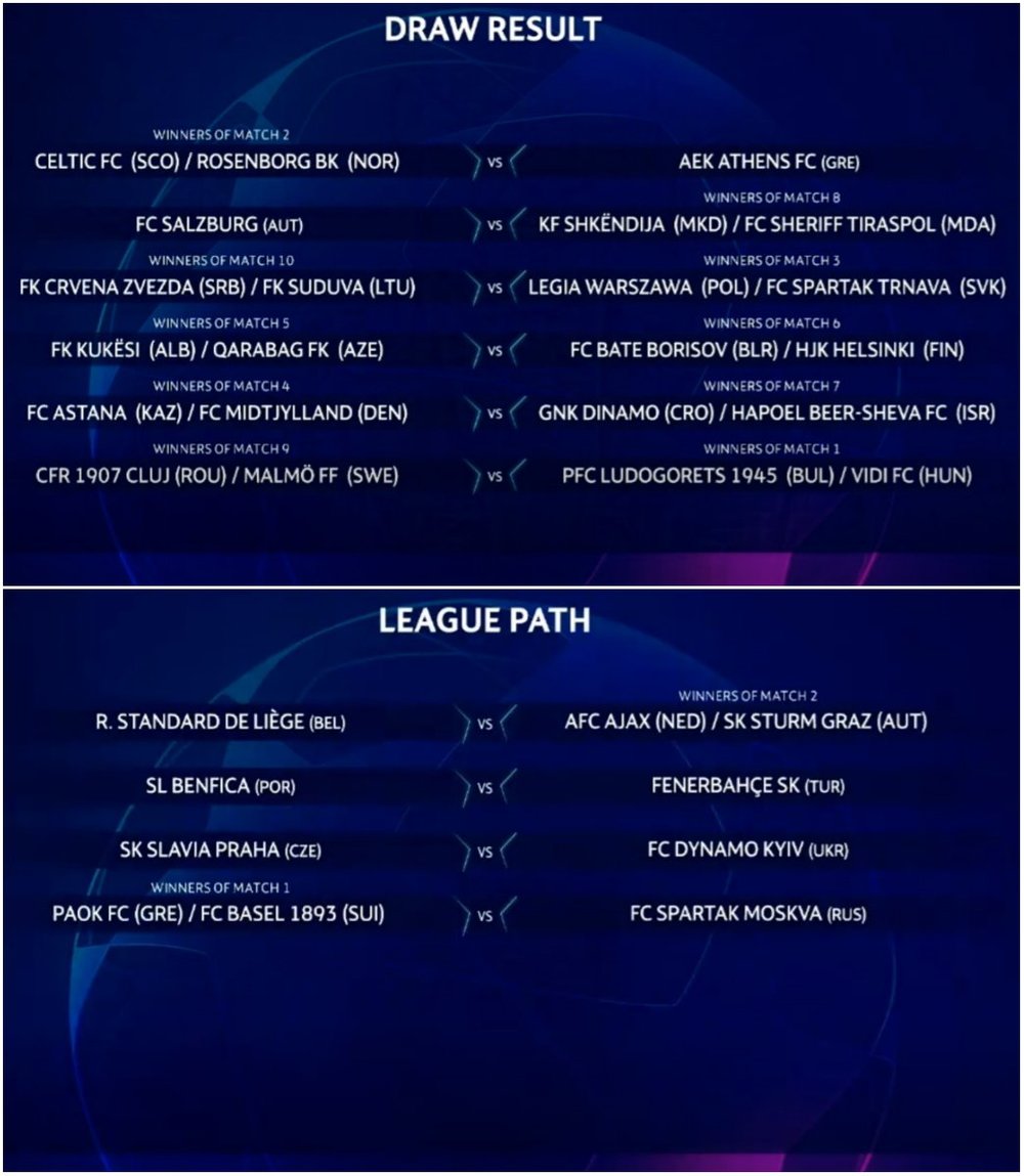 Команды, проигравшие на данной стадии, продолжат борьбу в раунде плей-офф Лиги Европы УЕФА, где пойдут по Пути чемпионов.