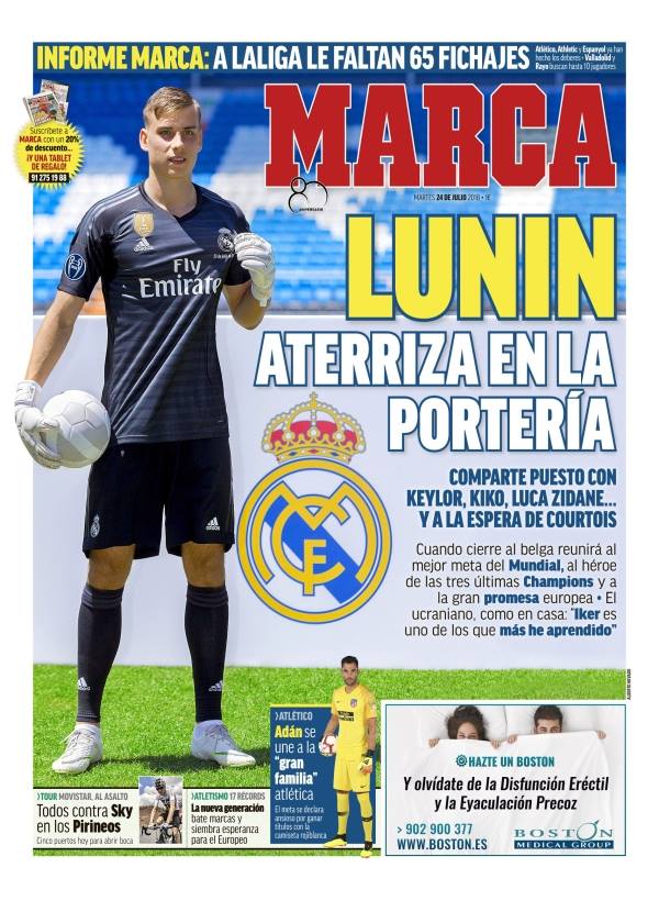Андрей Лунин попал на обложку крупнейшего испанского таблоида