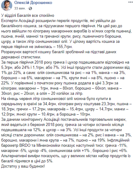 За первое полугодие 2018 гречка и сахар подешевели соответственно на 5,30 гривен, или 24% и 1,1 гривну или 7%.