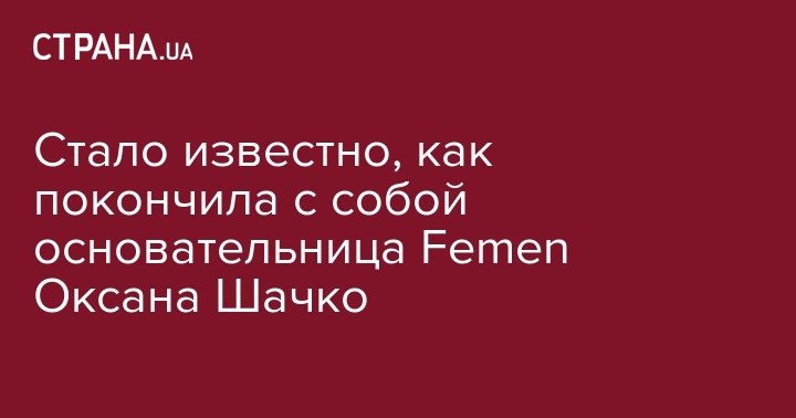 Еще одна основательница Femen Анна Гуцол подтвердила, что Шачко покончила с собой.