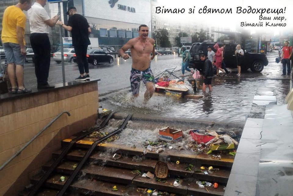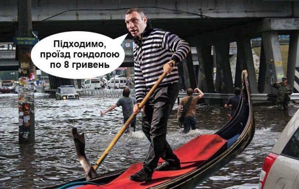 "Проезд на гондоле по 8 гривень". Сеть взорвалась фотожабами на Кличко и залитый дождями Киев