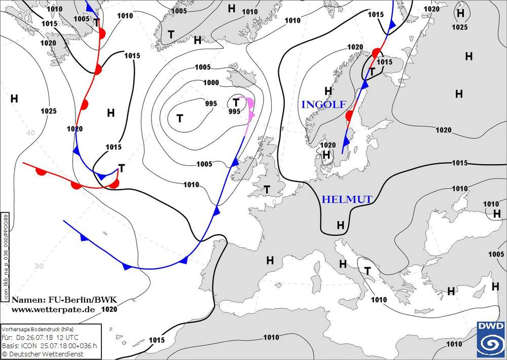 "Этот вредный циклон уже вроде и заполняется и начинает поджимать антициклон Хельмут (на карте), то есть, это все должно уже затухать. Но. Воздух настолько перенасыщен влагой, циклон, хоть и старый, но все же еще над нами, потому ливни с грозами никуда не исчезают", пишет синоптик.