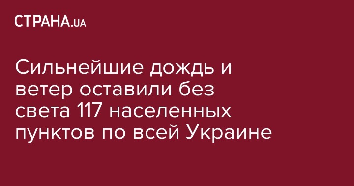 "25 июля в результате осложнения погодных условий (град, гроза, порывы ветра) в результате срабатывания системы защиты линий электропередач обесточены 117 населенных пунктов в семи областях, а именно: в Запорожской – 30 населенных пунктов, в Днепропетровской – 24, в Житомирской – 20 в Киевской – 14, в Донецкой – 13, в Луганской – 12, в Кировоградской – 4", – сказано в сообщении.