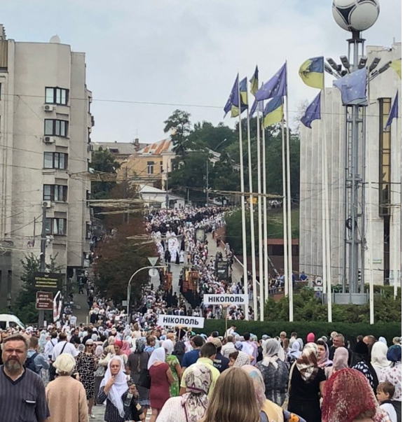 Во главе шествия несут святыни, которые затем выставят в Киево-Печерской лавре. Среди них мощи и иконы Андрея Первозванного и князя Владимира, крестившего Киев.