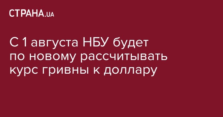 Со среды, 1 августа в Украине вступила в силу новая методика Национального банка по расчету официального курса гривны к доллару США, пишет портал НВ Бизнес.