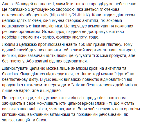 Исполняющая обязанности министра здравоохранения Украины Ульяна Супрун вновь предостерегла читателей своего Facebook. На этот раз – от популярной безглютеновой диеты.