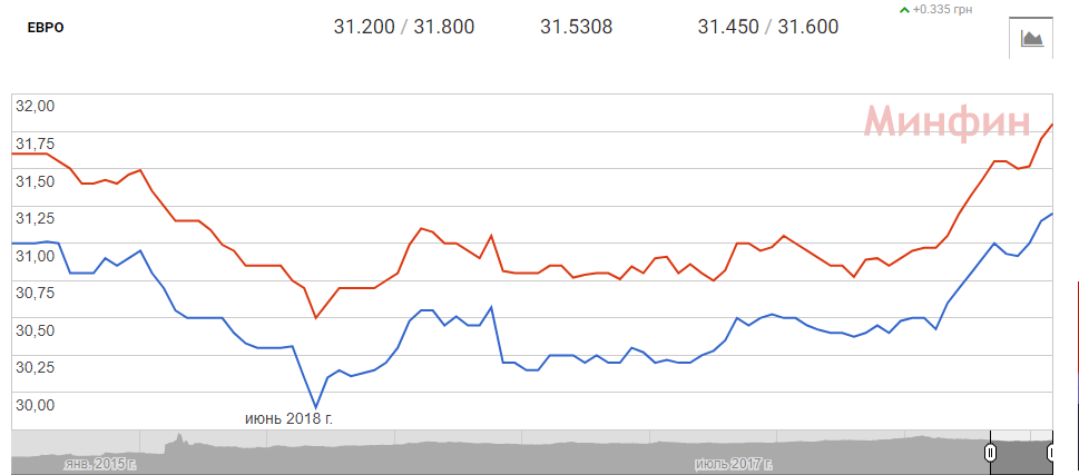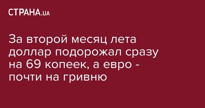 Как сообщала "Cтрана",  на  1 августа курс евро преодолел психологическую отметку в 31 гривну.