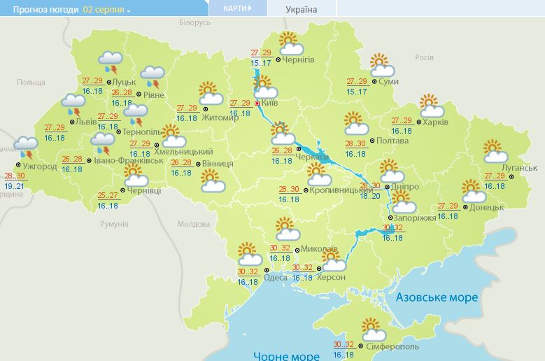 Погода в Украине 2 августа. Синоптики обещают дожди с грозами лишь Западной Украине