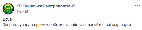 В пятницу, 3 августа, с 18:00 до 19:00 в Киеве временно прекратит работу станция метро "Олимпийская". Одновременно метро "Площадь Льва Толстого" закроется на вход, а ст. м. "Дворец Спорта" - закроется на выход.