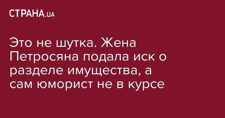 Это не шутка. Жена Петросяна подала иск о разделе имущества, а сам юморист не в курсе