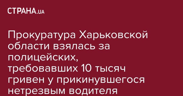 Прокуратура начала расследование в отношении полицейских, которые требовали 10 тысяч гривен у водителя за непривлечение его к ответственности за вождение якобы в нетрезвом виде. Об этом сообщает пресс-служба прокуратуры Харьковской области.