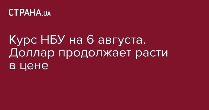 Нацбанк Украины установил курс основных валют по отношению к гривне на понедельник, 6 августа. Об этом сообщается на сайте регулятора.