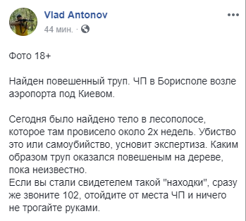Возле аэропорта Борисполь в лесополосе нашли тело повешенного. Фото 18+