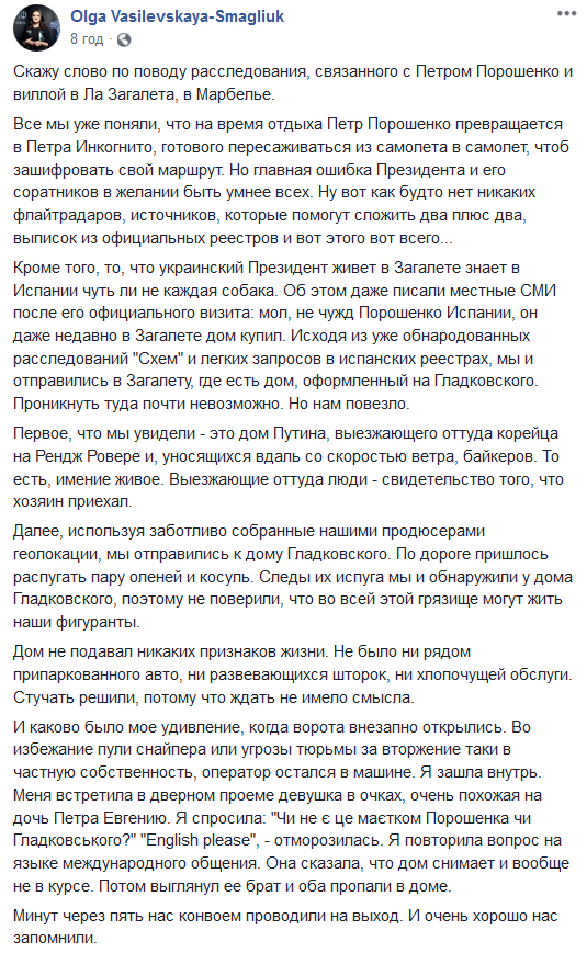 "Скажу слово по поводу расследования, связанного с Петром Порошенко и виллой в Ла Загалета, в Марбелье.