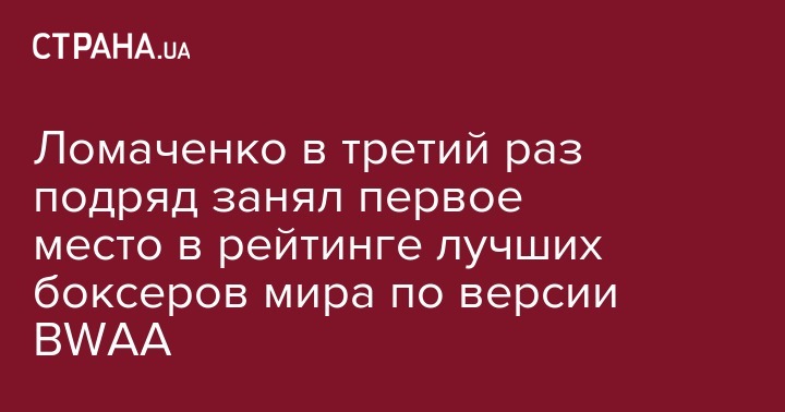Украинский боксер Василий Ломаченко остался на первом месте в рейтинге лучших боксеров мира по версии американских журналистов по версии Ассоциации журналистов Америки, пишущих о боксе - BWAA, сообщает сайт Ассоциации.