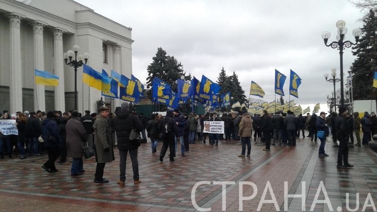 9.17. Под Верховной Радой на митинг вышли "свободовцы" и члены "Партии простых людей".