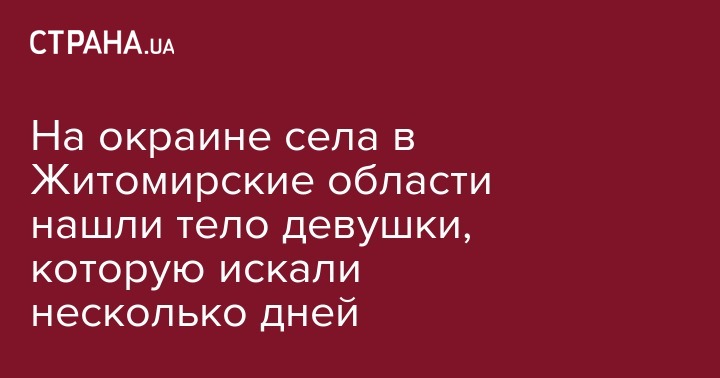На окраине с. Бондарцы Житомирского района 8 августа обнаружили тело 20-летней девушки, которую разыскивали 2 дня. Об этом говорится в сообщении полиции области.