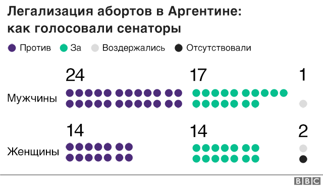 Ожидалось, что голосование будет непростым, и никто не брался предсказать его итог. После рекордно долгого обсуждения против легализации абортов проголосовали 38 сенаторов, 31 высказался за.
