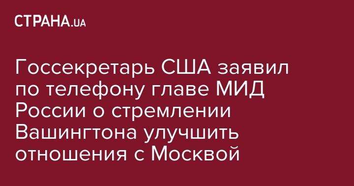 Госсекретарь США заявил по телефону главе МИД России о стремлении Вашингтона улучшить отношения с Москвой
