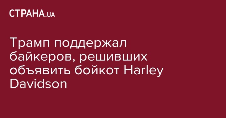 Президент США Дональд Трамп в воскресенье поддержал бойкот со стороны американских байкеров американской мотоциклетной компании Harley Davidson из-за вывода части производства за пределы США. Об этом он сообщил в Twitter.