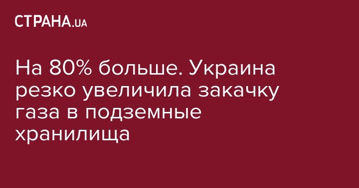 С начала августа в подземные хранилища Украины закачено свыше 593 миллиона кубометров газа. Запасы "голубого топлива" в подземных хранилищах (ПХГ) увеличились на 80,6%, или на 5 994,02 млн куб. м. В общем они составляют 13 432,19 млн куб. м.