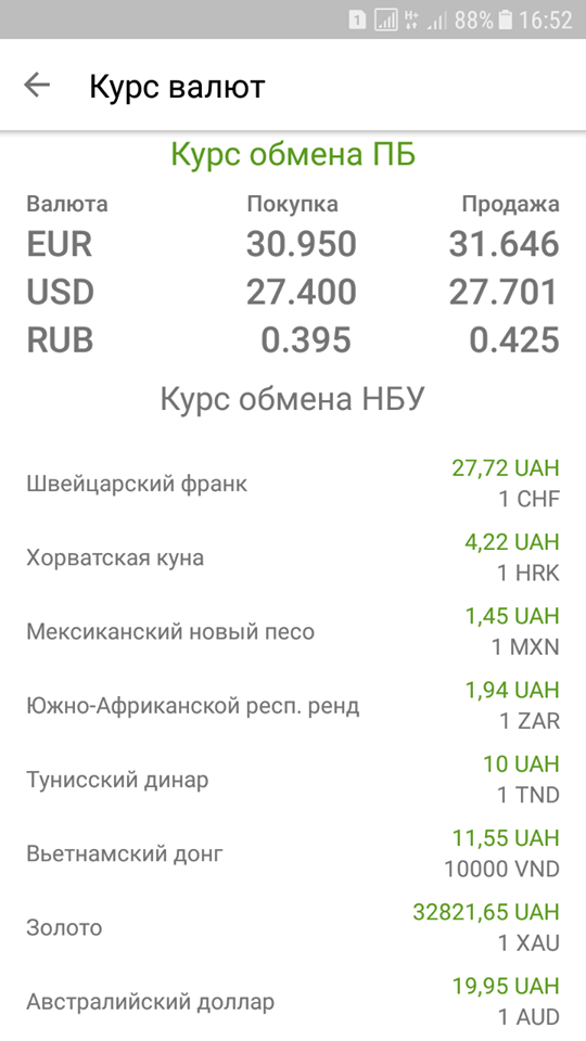 Курсы обмена "Приватбанка". Скриншот: Cтрана.ua