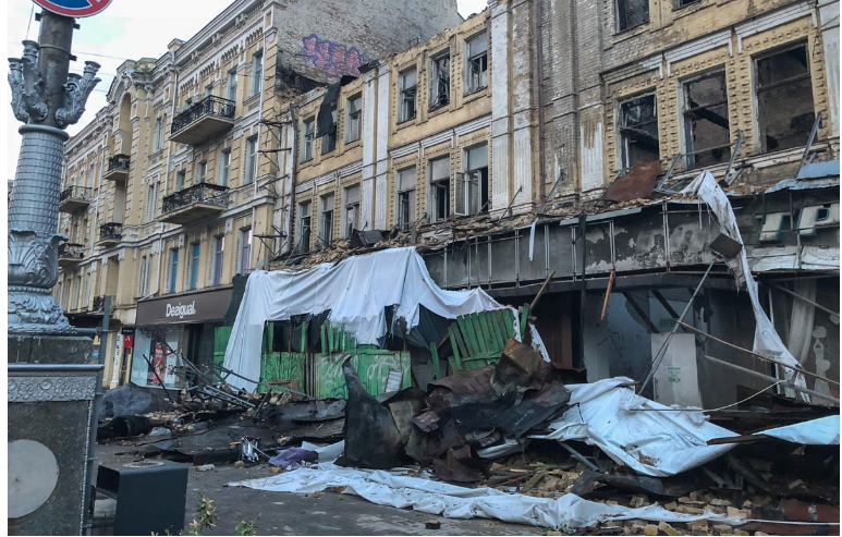 Также мы писали, что в самом центре Киева, 16 августа, произошло очередное ЧП. Здесь, на Крещатике, напротив центрального универмага, обрушилась часть горевшего ранее здания, фасад которого был скрыт защитной сеткой.