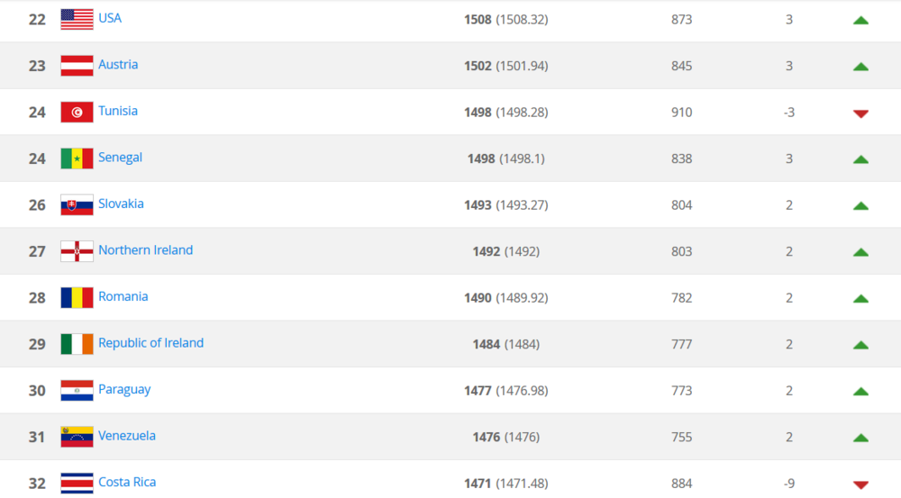 Сборная же Украины сохранила свои позиции и занимает 35 место с 733 баллами. Свежий рейтинг обнародован на официальном сайте ФИФА.