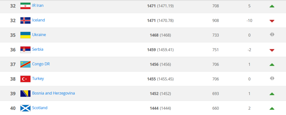 Топ-40 лучших команд мира по рейтингу ФИФА