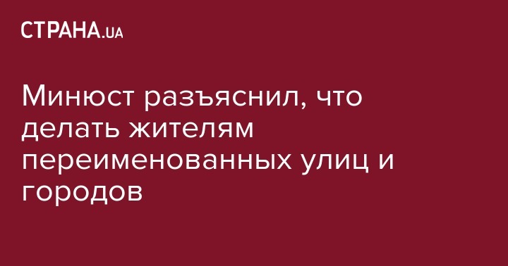 Минюст разъяснил, что жителям переименованных улиц и городов, а также предпринимателям не надо спешить менять документы в связи с новыми названиями. Переименование не предполагает мгновенную замену регистрационных документов.