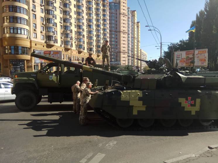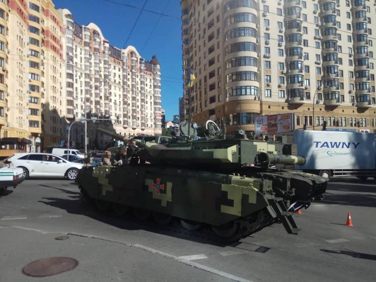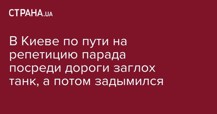 В Киеве по пути на репетицию парада посреди дороги заглох танк, а потом задымился