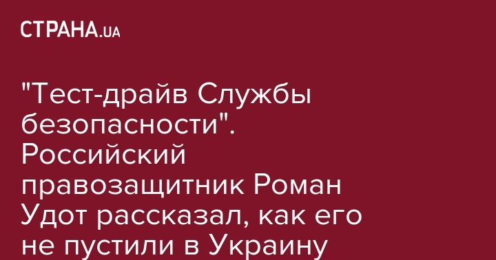 Как говорит правозащитник, он направлялся из Тбилиси в Вильнюс с пересадкой в аэропорту "Борисполь", 7 часов между самолетами он хотел провести в Киеве. По итогам проверки ему отказали во въезде, потому что он не назвал цель своего визита. "Хотя она была стопроцентная, туристическая, встреча с друзьями, не знаю, как это назвать", - отмечает Роман Удот.