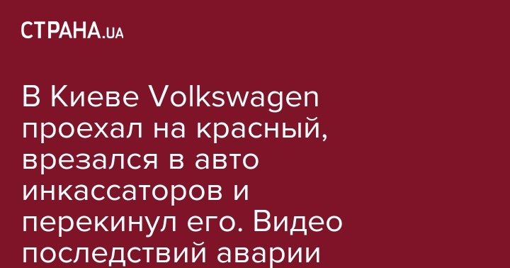 В Киеве Volkswagen проехал на красный, врезался в авто инкассаторов и перекинул его. Видео последствий аварии