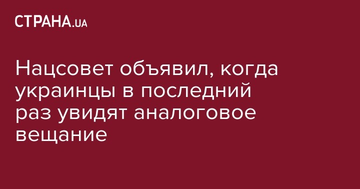 Национальный совет Украины по вопросам телевидения и радиовещания с 31 августа Украина выключит аналоговую технологию передачи телесигнала по всей территории страны. Об этом сообщает пресс-служба Нацсовета.