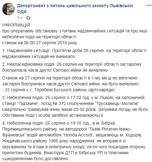 Об этом сообщает Департамент по вопросам гражданской защиты населения Львовской облгосадминистрации в Facebook.