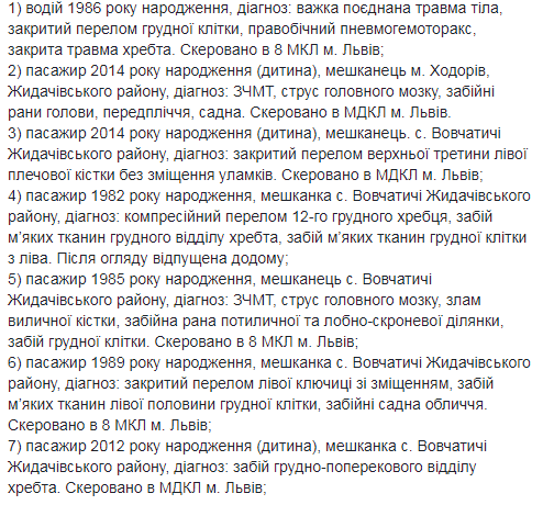 Одну из пострадавших женщин после предоставления медпомощи отпустили домой, остальных транспортировали в различные больницы Львова.