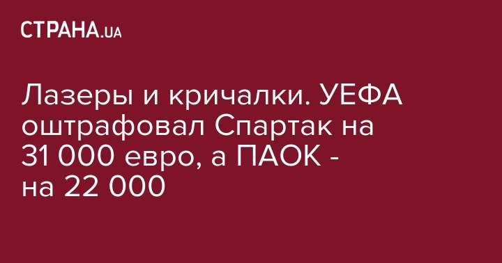 Лазеры и кричалки. УЕФА оштрафовал Спартак на 31 000 евро, а ПАОК - на 22 000