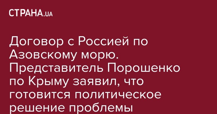 Договор с Россией по Азовскому морю. Представитель Порошенко по Крыму заявил, что готовится политическое решение проблемы