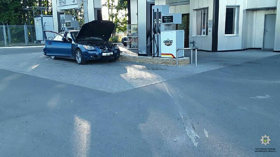 В Харькове водитель BMW, cкрываясь от полиции, протаранил микроавтобус и наехал на АЗС