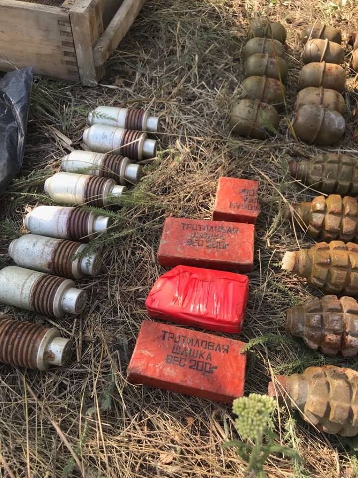 "Правоохранители извлекли из тайника 4 тротиловых шашки, 3 детонатора, 7 выстрелов ВОГ-25, 1 выстрел ВОГ-25П, 42 патрона калибра 5,45 мм, 334 патрона 7,62х54 мм, 36 патронов 7,62х39 мм, 19 гранат РГД-5, 17 гранат Ф-1 и 16 запалов к ним. Все найденные взрывные предметы и боеприпасы… изъяты представителями Национальной полиции", - говорится в опубликованном сообщении.